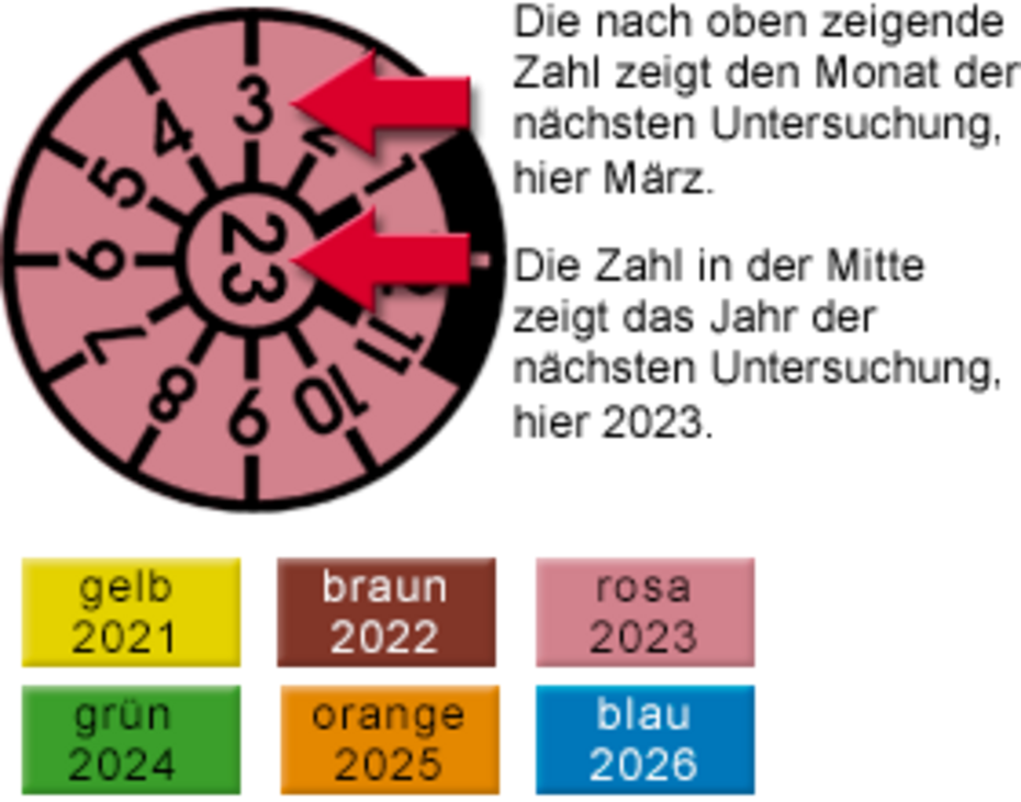 Damit Sie nicht irgendwann eine Mängelkarte hinter den Scheibenwischern Ihres Fahrzeugs vorfinden, achten Sie auf die Daten die Ihnen die Prüfplakette auf dem hinteren Kennzeichen anzeigt. Darauf zu erkennen ist der Monat und das Jahr, in dem die Durchführung der nächsten Hauptuntersuchung erforderlich ist. Die Farbe gibt zusätzlich nochmals Aufschluss über das Jahr der Fälligkeit. Die Abfolge der Farben wiederholt sich alle sechs Jahre. Gerne beantworten wir Ihnen weitere Fragen.